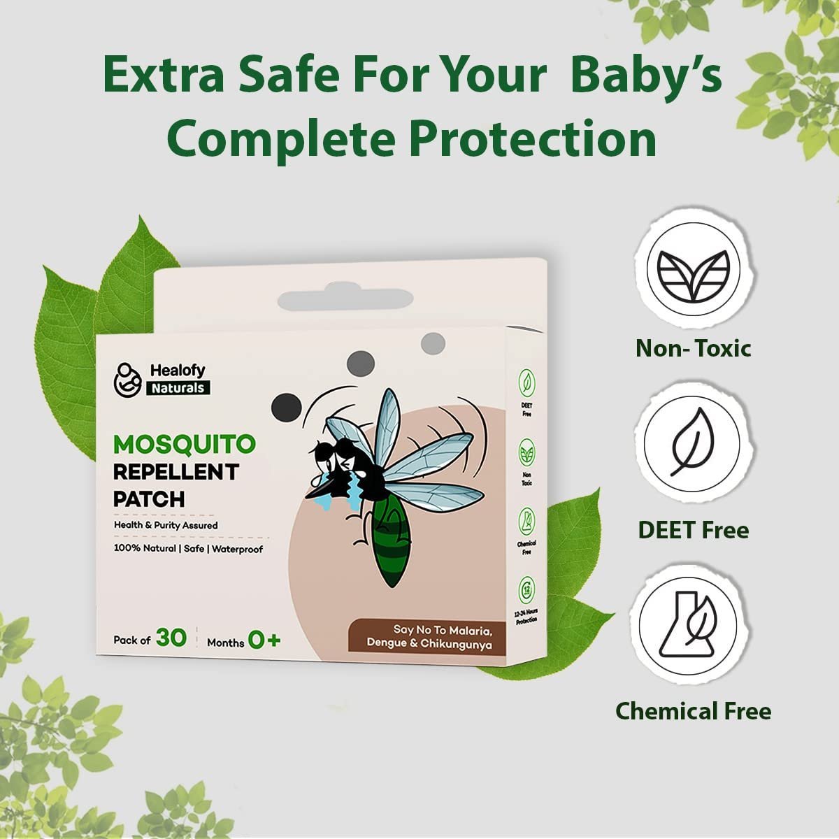 Healofy Naturals Mosquito Repellent Patches for 0+ Month Babies Patches with 12 Hours Protection | 100% Safe & Waterproof (36 Patches)