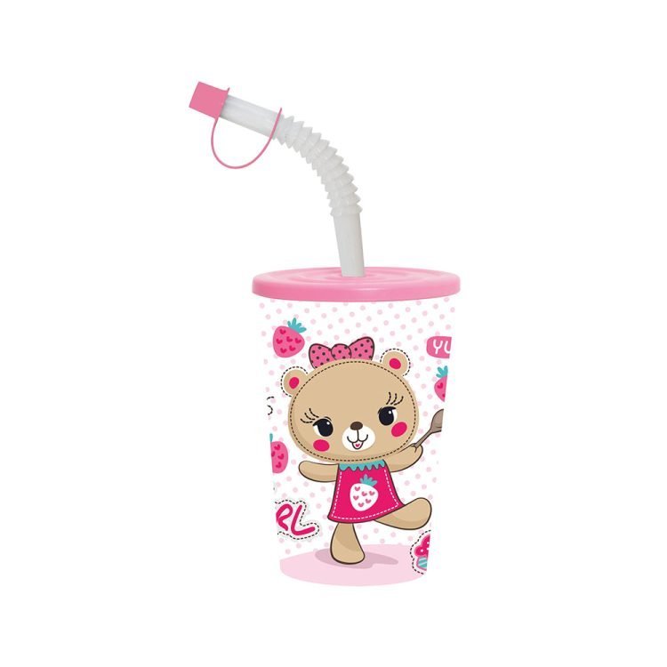 Herevin Tumbler with Bendy Straw – Yummy Pink Bear