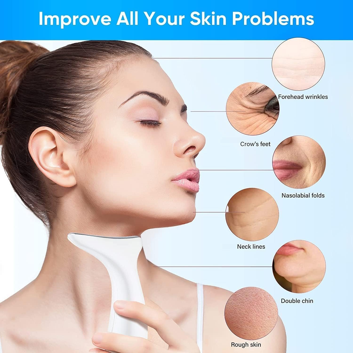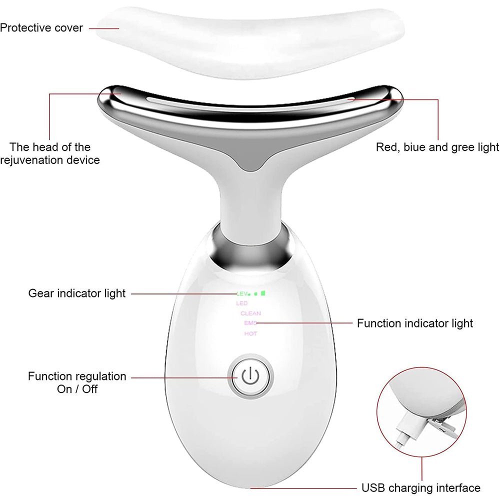 - This multi-functional facial neck massager can promote blood circulation and metabolism to clear meridians, help eliminate double chin, resist and slow down cell aging. Deeply clean the debris in the pores to achieve the effect of shrinking pores, reducing spots and acne, and resolving dull and dull skin.