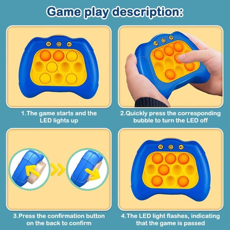 ? Interactive Fidget Toy ? The fun light up games will attract kids, keep them entertained for hours, keeping kids away from phones and tablets, effectively reducing screen time.?Kids can play with friends or parents at the party and any outdoor/indoor activities.?Fidget toy games can also help you focus and beat boredom.?A good helper to relieve work, study, family, office stress and bring happiness.