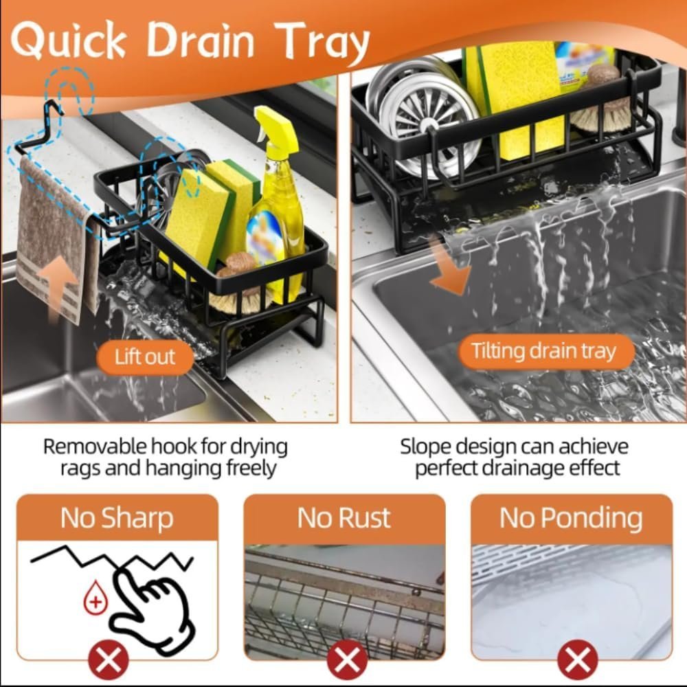 • 🧼 Versatile Sponge & Soap Storage: This holder isn’t just for sponges! With ample space, it accommodates your sponge and soap, providing a convenient soap and sponge holder for the kitchen sink.