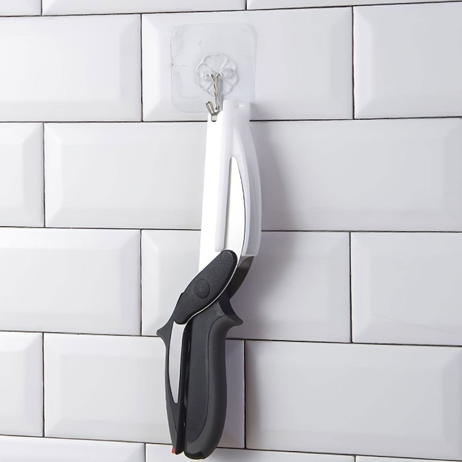 - Easy To Use:Perfect protable kitchen cutter for picnics and camping trips,Combination food chopper and cutting board makes cutting, slicing and easy and fast. while camping you don’t need to bring a cutting board or knife because it’s too much trouble. The lock buckle on the handle’s tail improve the safety of the smart clever scissor’s using.