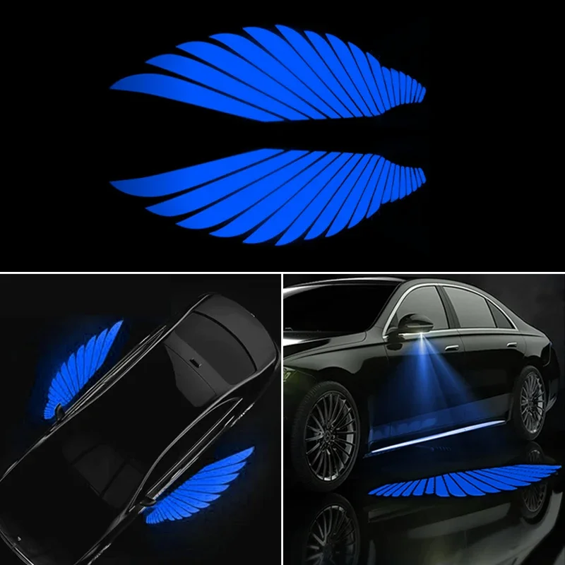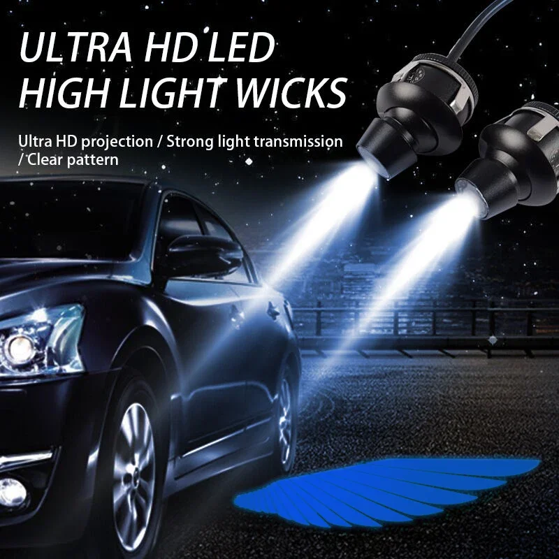 - 2PCS Car Angel Wings Welcome Light Shadow Bulb Atmosphere Car LED Door Warning Light Motorcycle Rearview Mirror Projection Lamp
