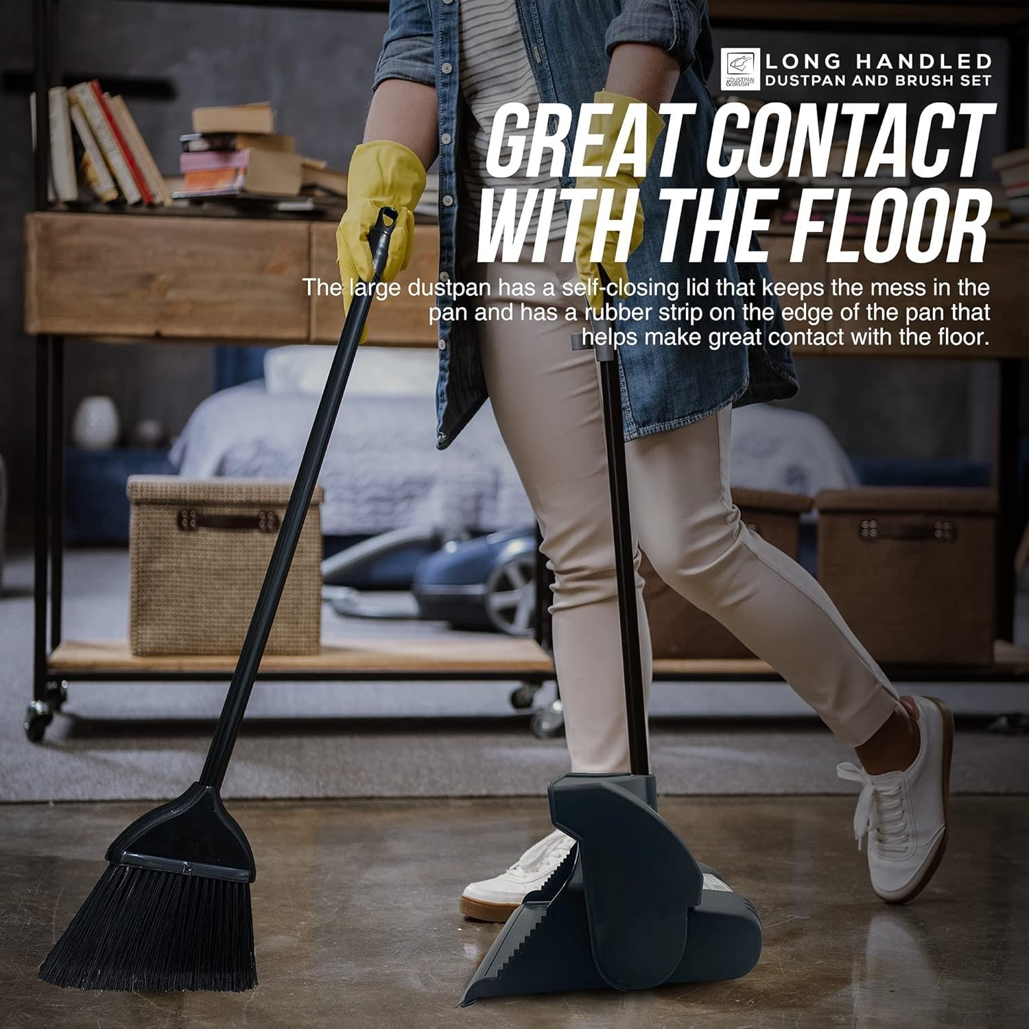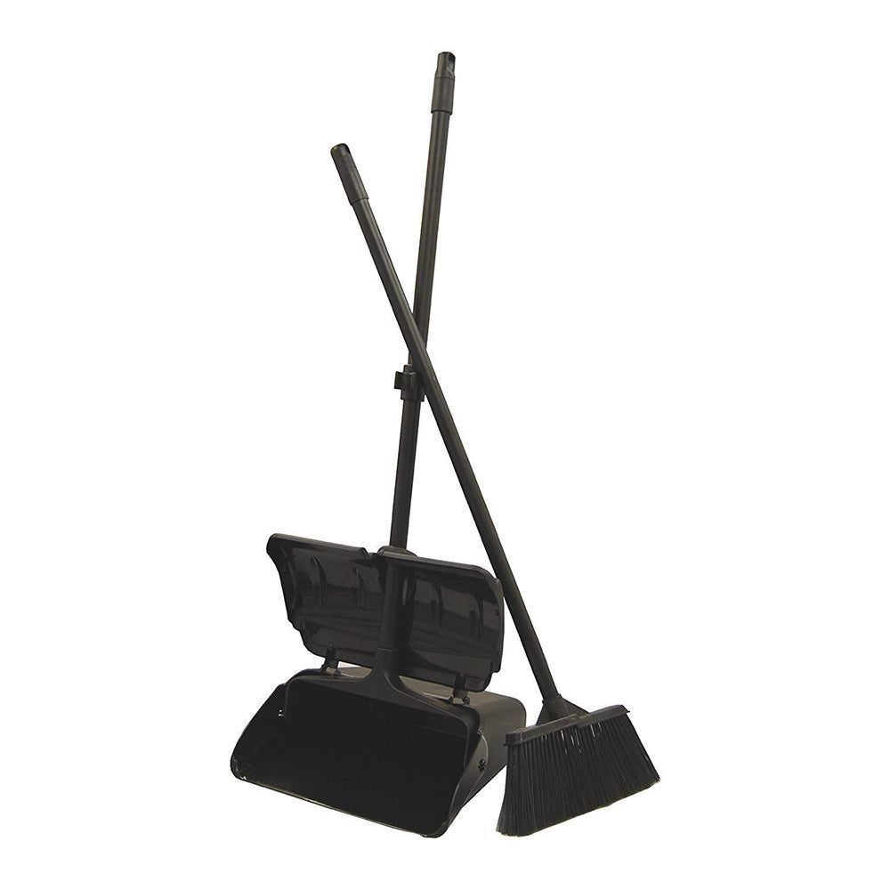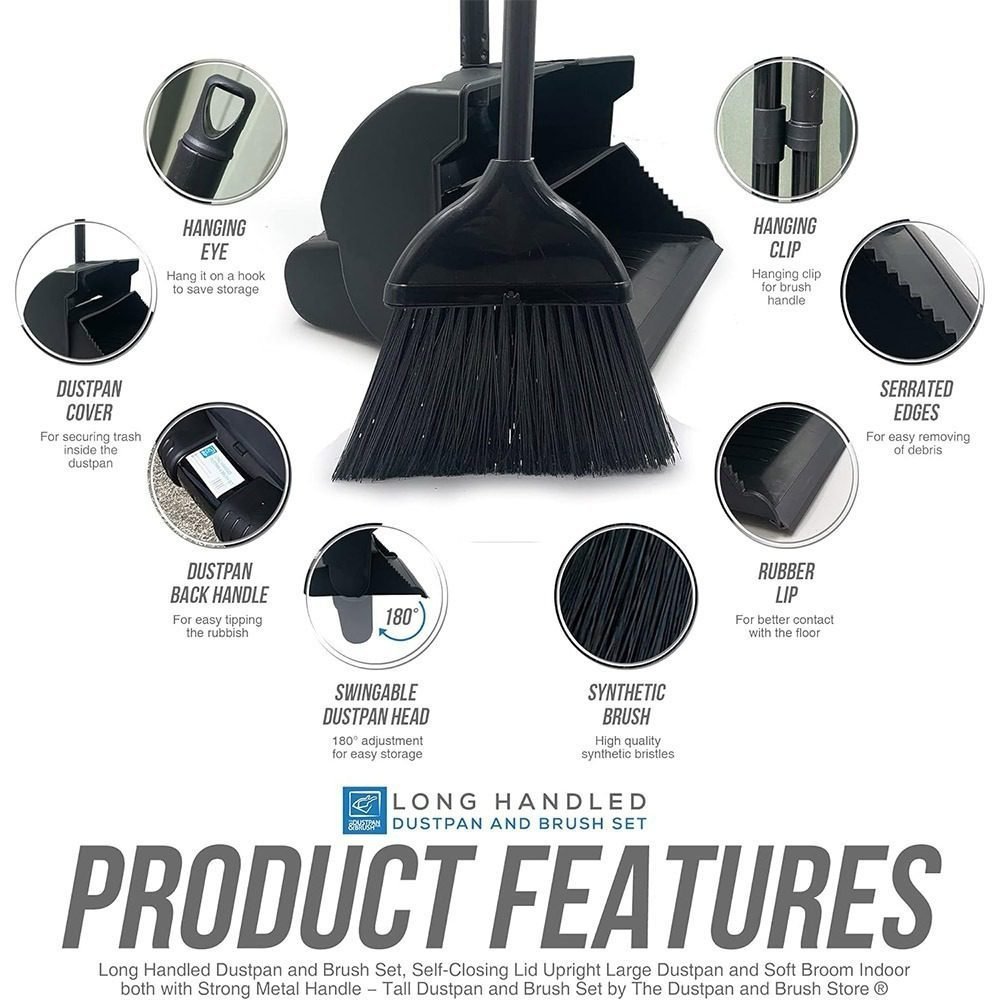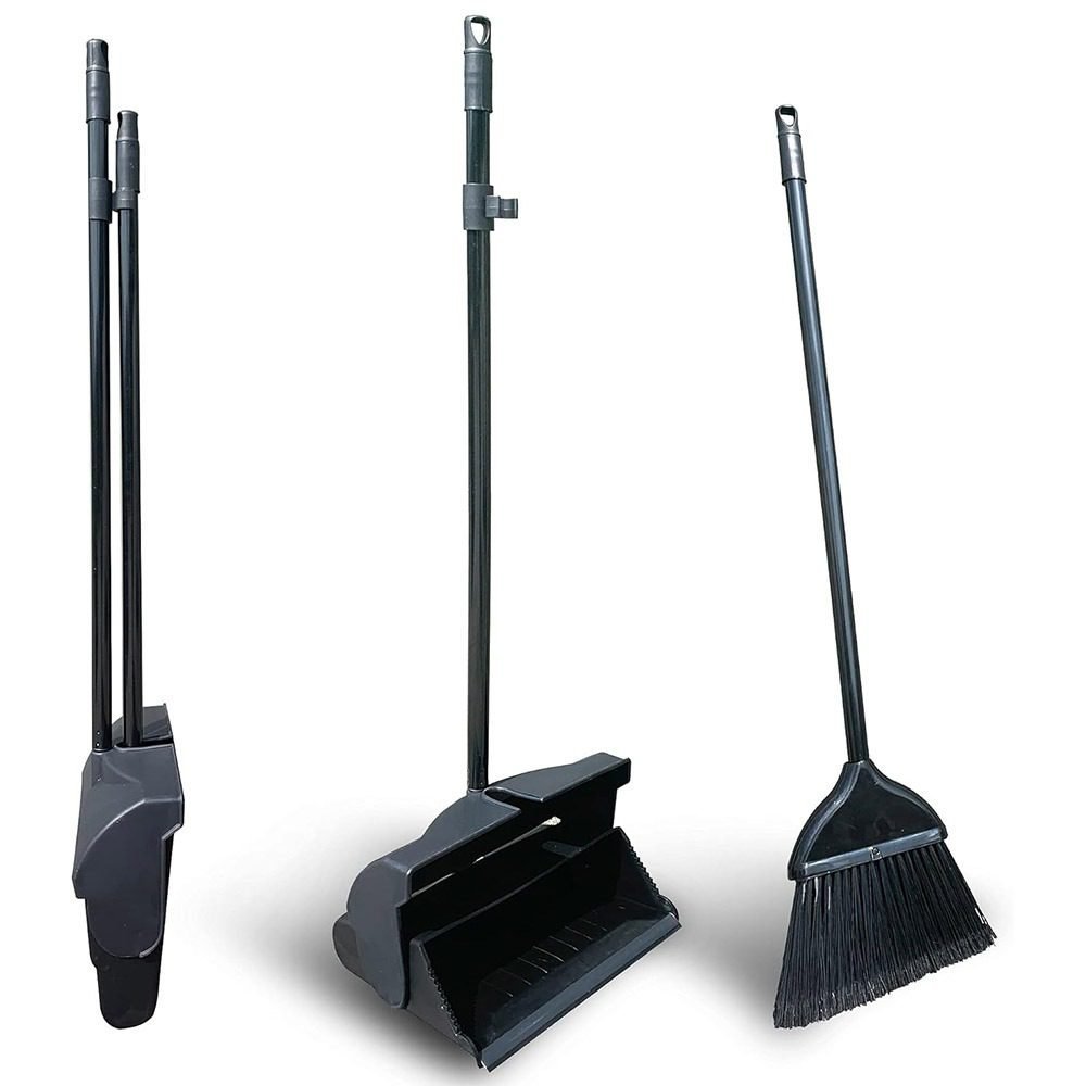 - The dustpan is foldable so you can carry trash without it falling out and you can snap the broom onto it