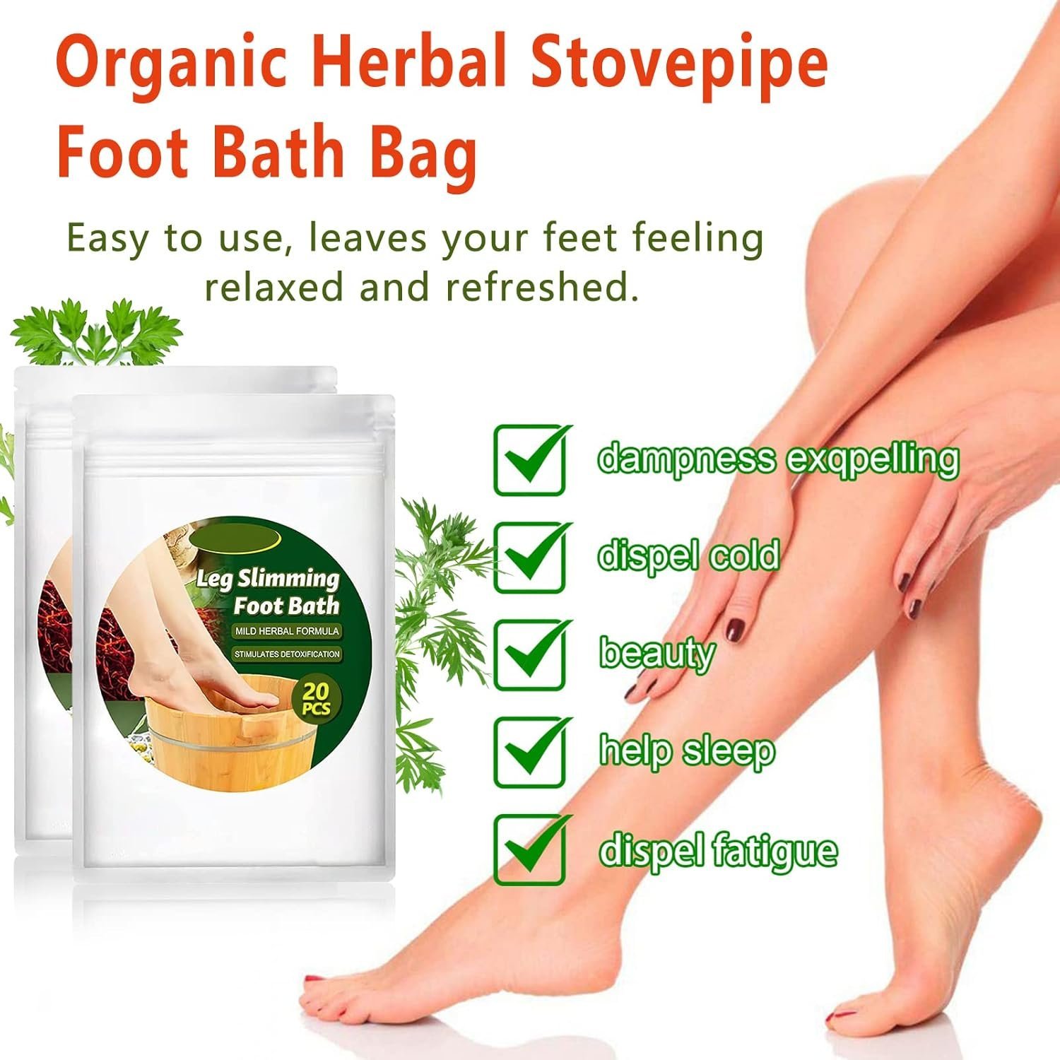 - Efficacy: The organic herbal stovepipe foot bath relaxes the leg muscles, reduces swelling, and any pain or stiffness, reduces elephant legs and loose body fat, effectively improves blood circulation, and makes legs thinner and more slender.