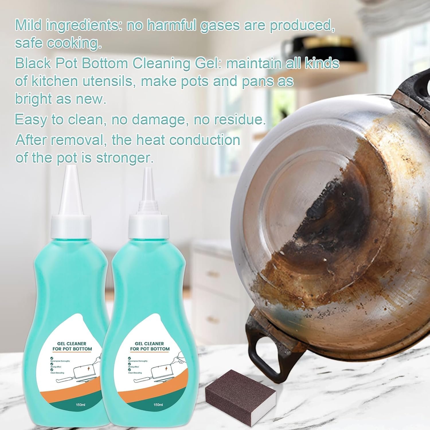 • 【Wide Applications】150g Magic Gel Cleaner for Black Pot Bottom Not only can it be used for gas stoves, kitchen utensils, porcelain plates, etc., it can also be used to clean glass teapots, stainless steel kettles, aluminum pots, etc.