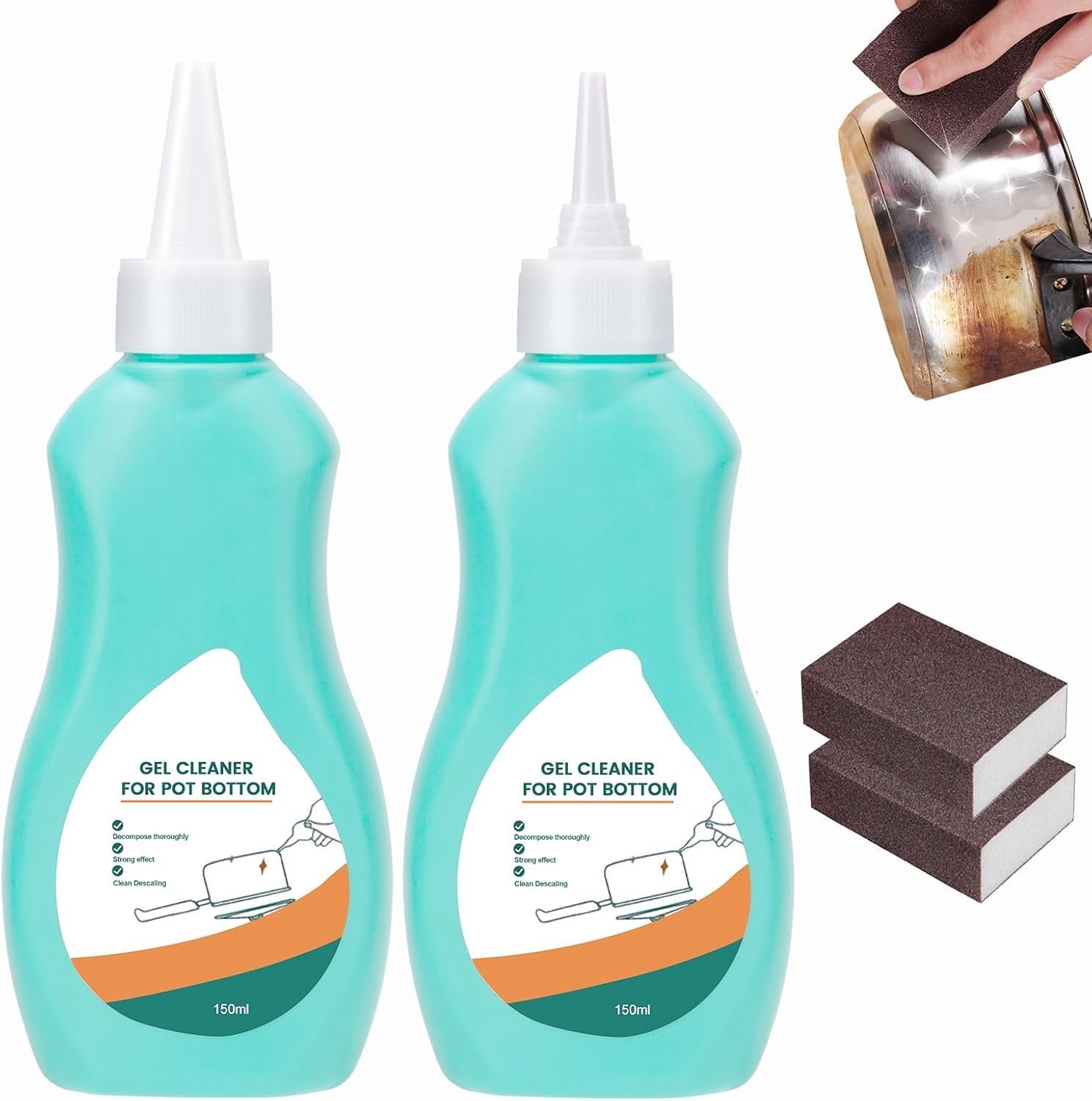 • 【Easy to Clean】:— Cookware bottom gel cleaner can say goodbye to the hassle of cleaning grease stains and dirt with knives and spatulas, effectively restoring the shine of new pots.