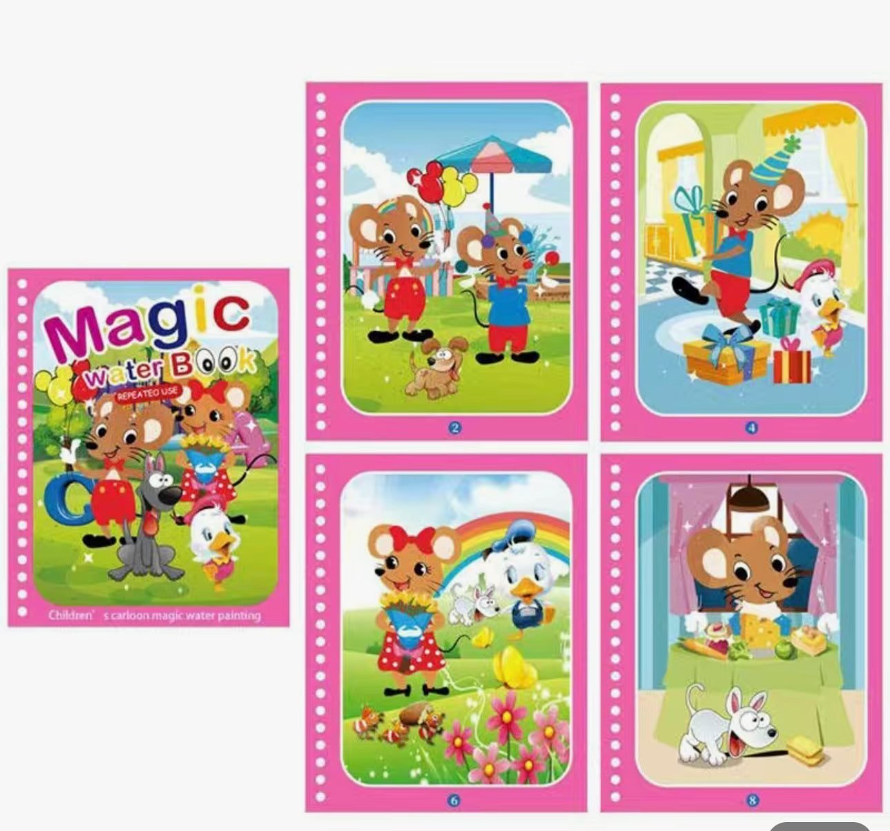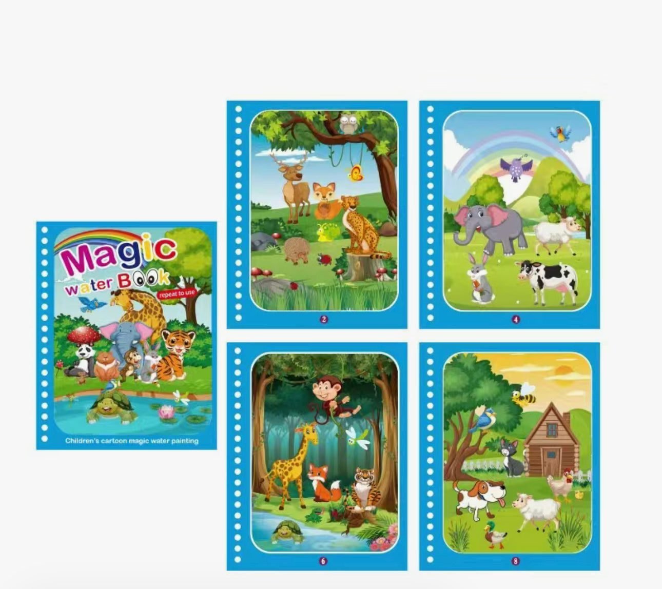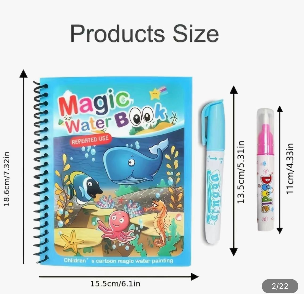 Main Features:- 🎨 Reusable Magic Pages: Paint with water and watch the colors appear magically—let it dry, and start all over again!