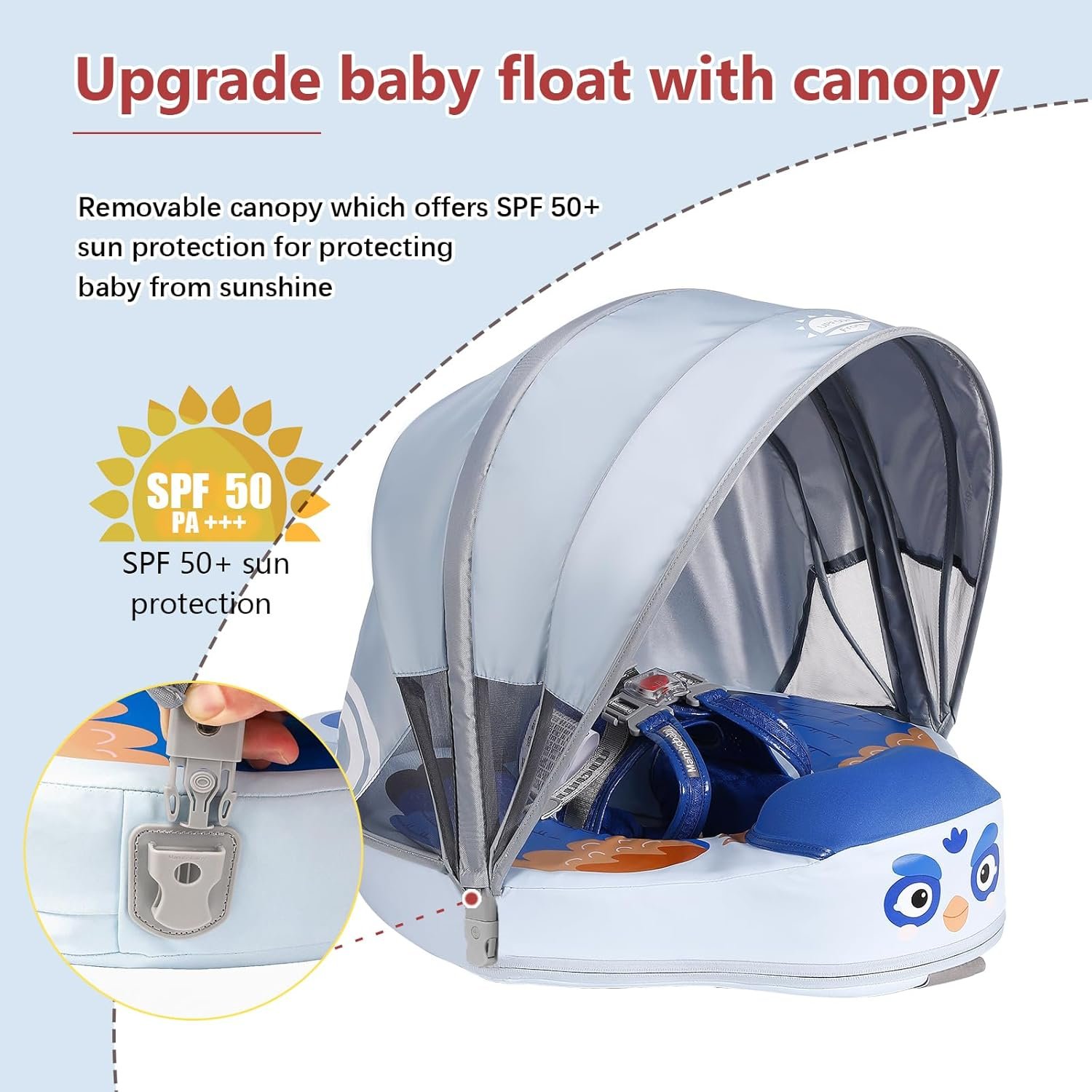 • DETACHABLE SUN CANOPY: The canopy offers a shady spot with UPF 50+ sun protection. The visible mesh of the canopy not only keeps the air flowing, but also allows you to observe the baby at any time. If it is not in use, you could take off and fold the removable sun canopy.