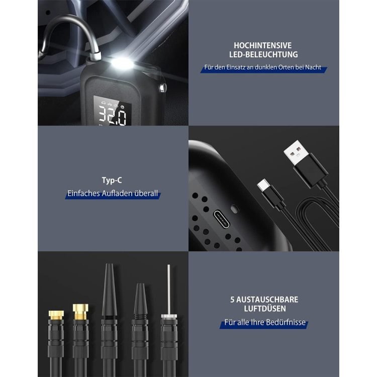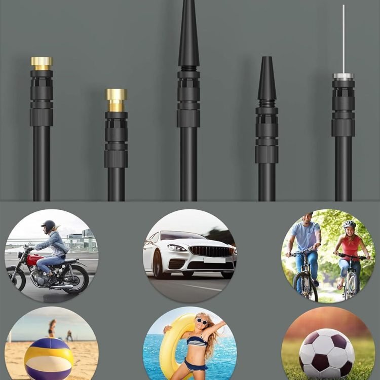 • air pump can be used without connection to an external power supply and is suitable for cars, motorcycles, bicycles, electric scooters, wheelchairs, basketballs, footballs etc. This functional and aesthetically pleasing product is the perfect inflation tool for your everyday life.