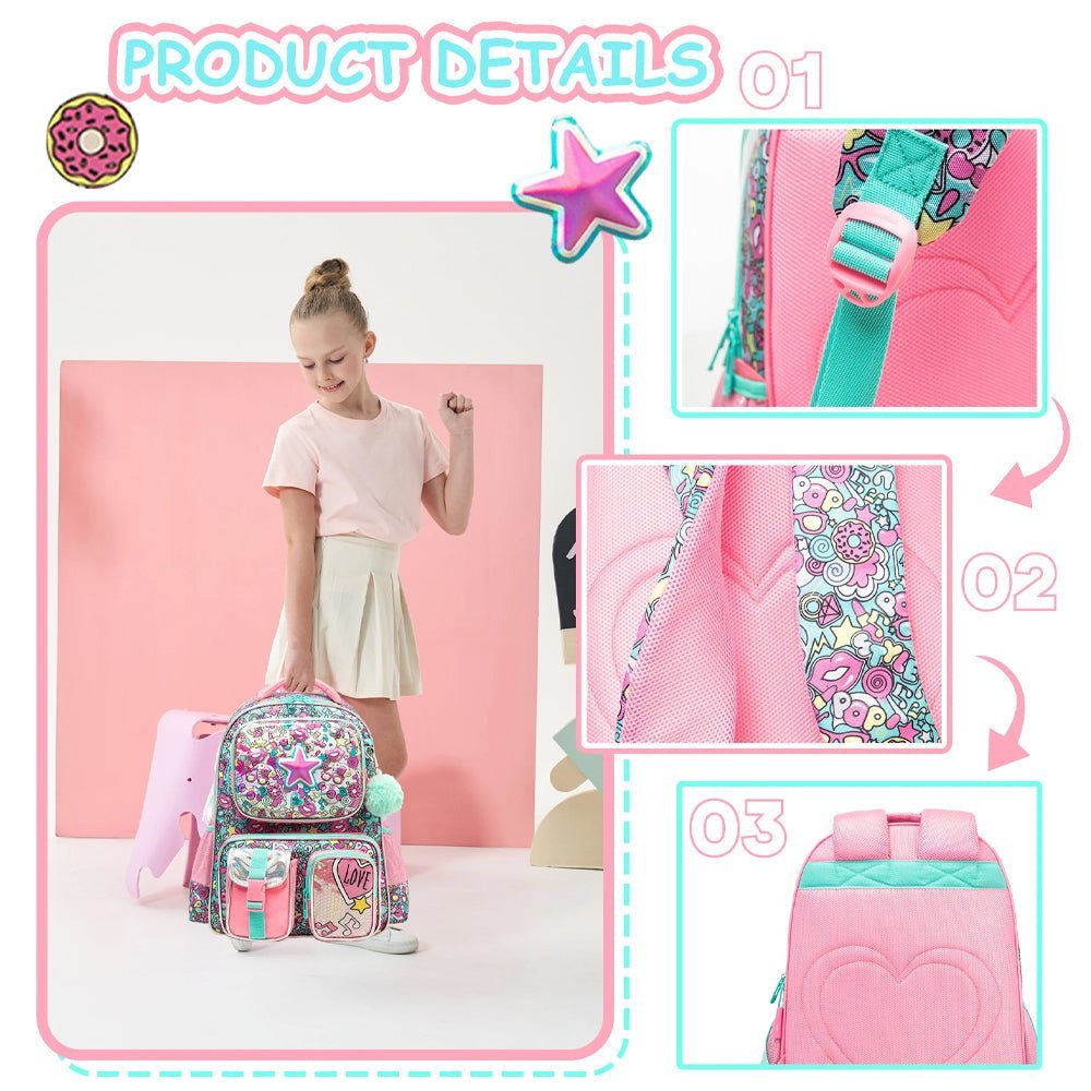 •  Made of durable polyester, this girls school backpack comes with a thick, breathable sponge strap and back plus an adjustable chest buckle. Relieve the pressure on your back and ease your travel fatigue.