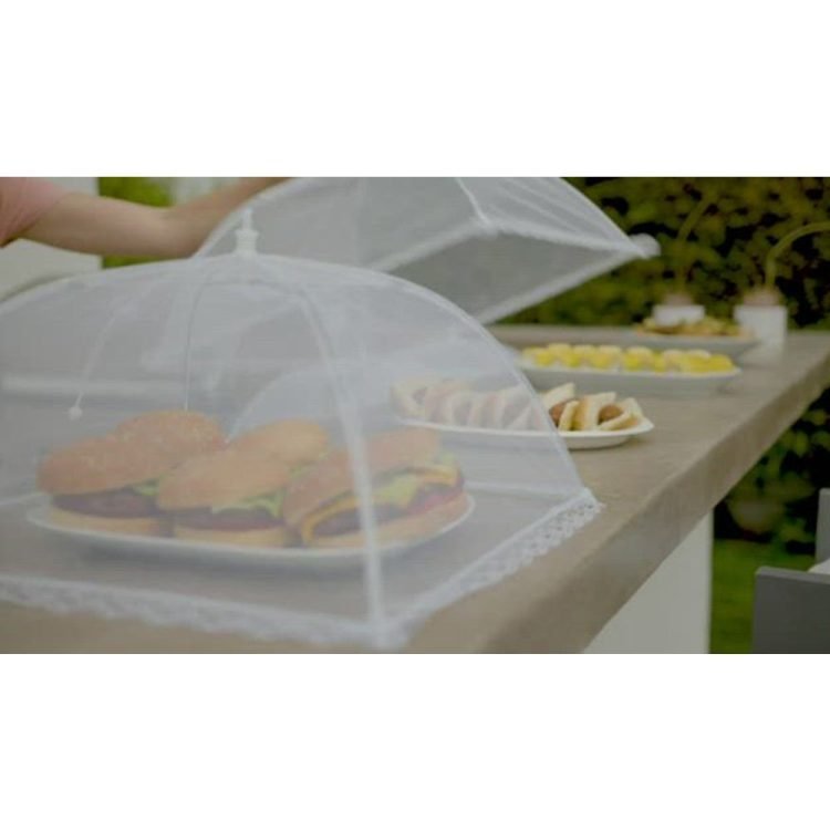 - Not only for party supplies: Elegant white food covers are not just for full year outdoor kitchen, birthday and pool party, garden BBQ, picnic, but also for RV, patio dinners, camping accessories, taco bar, outdoor movie nights and?party buffet.