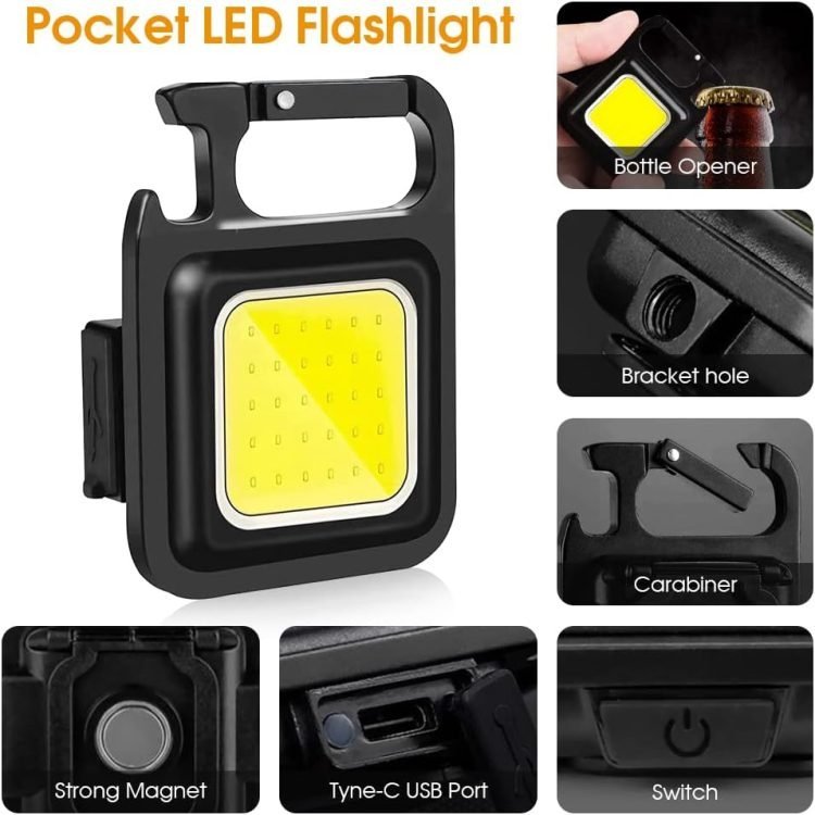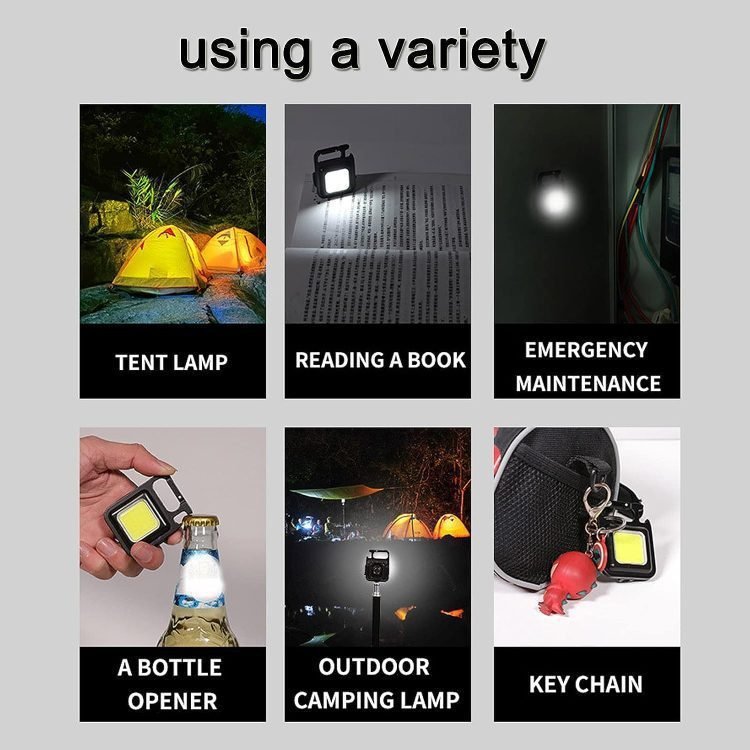 - This keychain flashlights Less than the size of a palm, weighing 45g, very convenient to carry.Emit up to 800 lumens of light, it was brighter than most of handheld flashlights,It provides a bright light with wide angle. The COB technical allows this light to be used as emergency light , small work light camping lights tent lights, and pocket light.