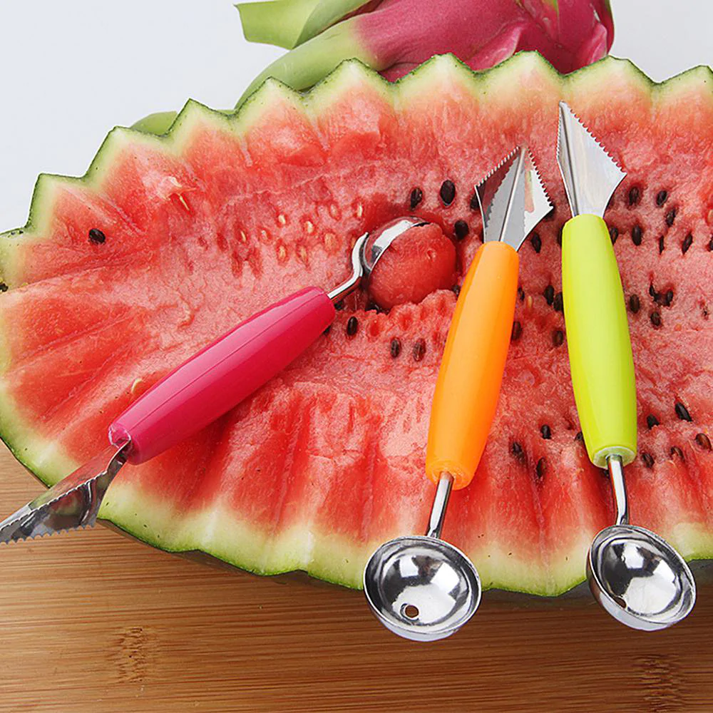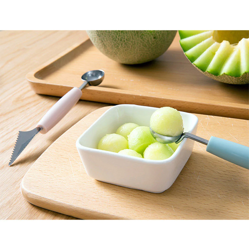 - There is?a hole?in the scoop to prevent the flesh from sticking with the ball