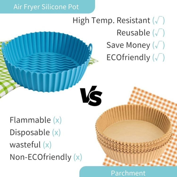 - Essential Air Fryer Accessories: 6.5 inches reusable air fryer silicone pot. No more cleaning the air fryer basket, making you more willing to use the air fryer and enjoy tastier food at the same time.