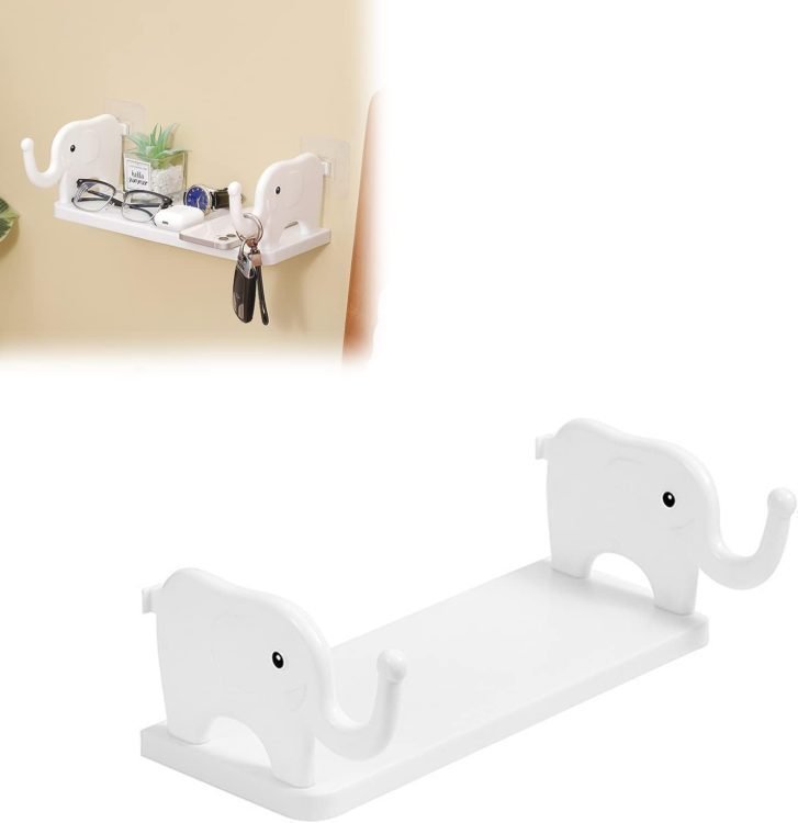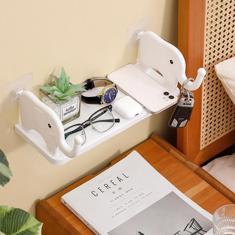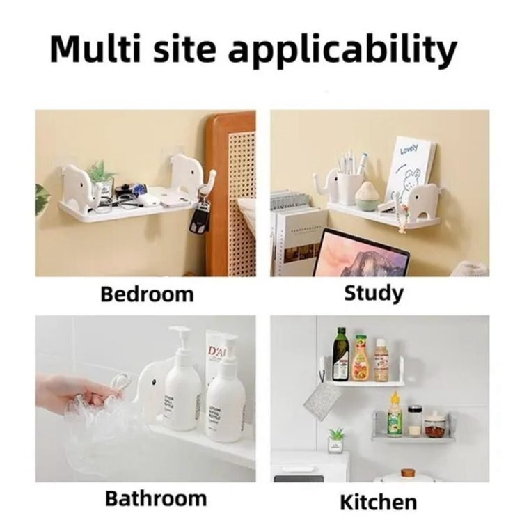 Multifunctional Elephant Shaped Storage Shelf, No Punching Wall Mounted Mini Storage Rack, Creative Cute Elephant Shelf Organizer for Kitchen Bathroom Bedroom Study