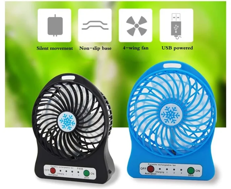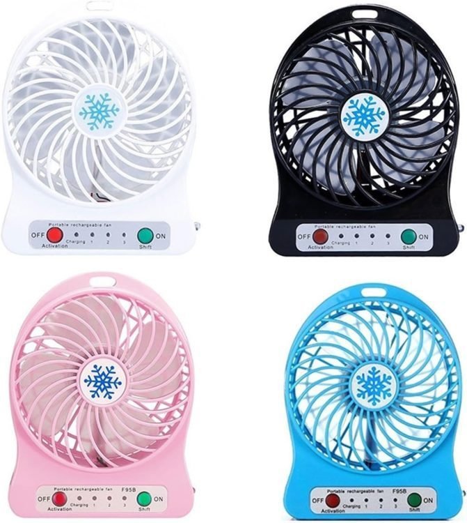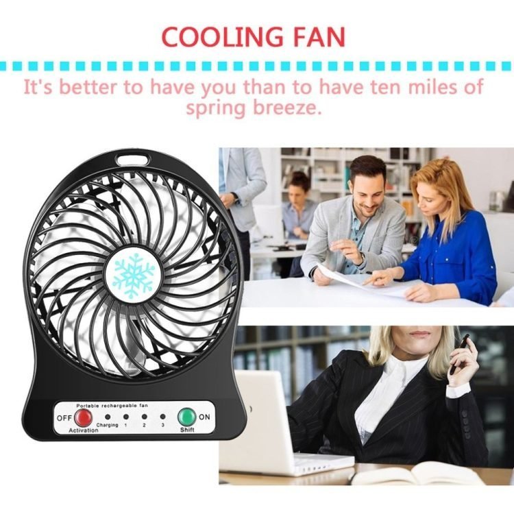 • Table Fan with Tilt Adjustable Head, it is trouble-free to put this small and the exquisite rechargeable fan.