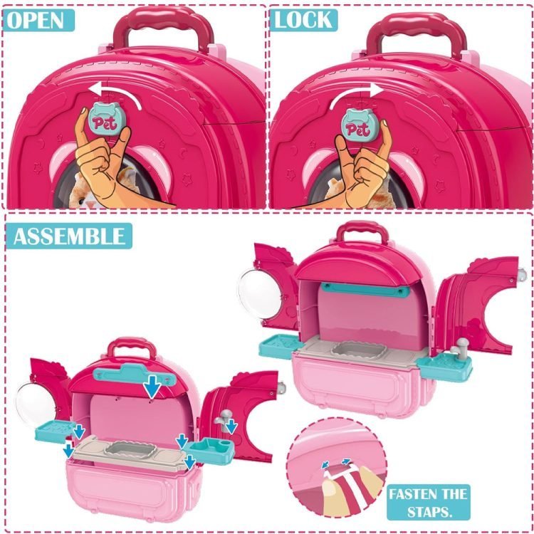 3-in-1 Educational Pet Care Pretend Play House Toy with Backpack
