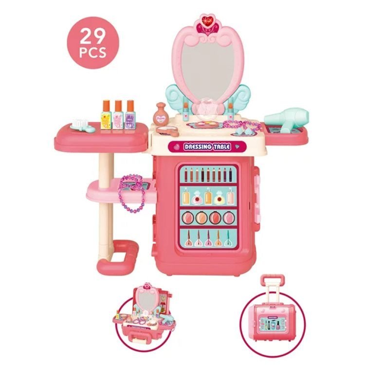 Designed for Fun: Delight your little one with the 3-in-1 Suitcase Beauty Makeup Play Set. This vibrant pink dressing table toy offers endless fun and imaginative play for girls aged 3 and above. Let their creativity blossom as they dive into the world of makeup and fashion.