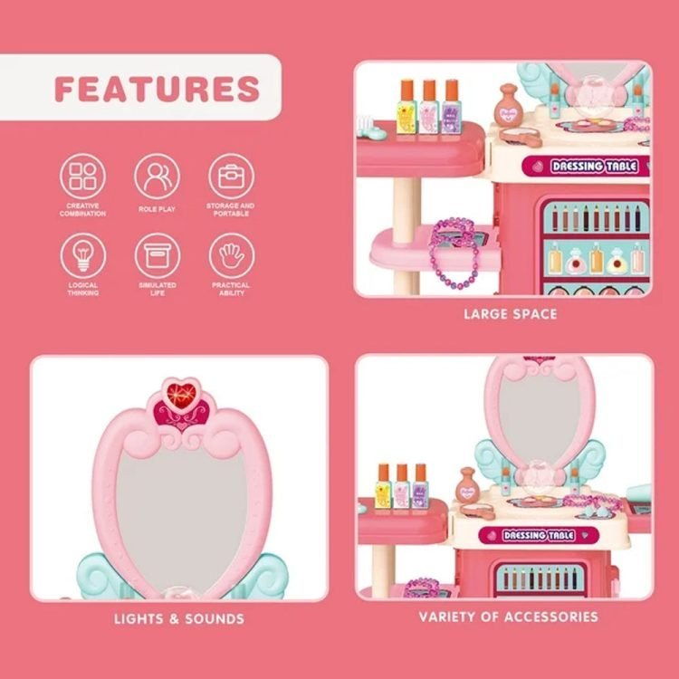 3-in-1 Pink Dressing Table Beauty Makeup Set for Girls