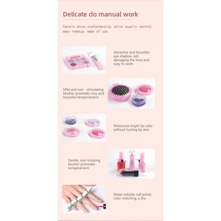 - Attractive and Safe: The makeup set features attractive colors and is crafted from safe materials. You can be confident that your child is playing with a toy that’s both engaging and secure.