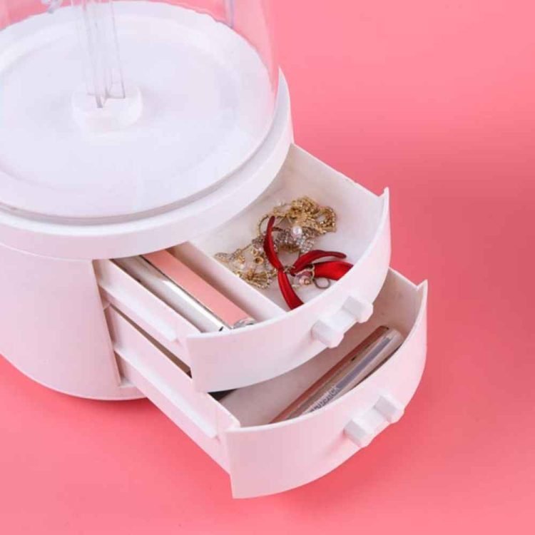 - The tiered arrangement of the shelves allows you to compactly place cosmetics and jewelry in one place.