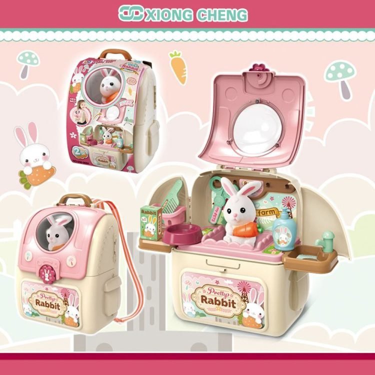 Introduce your child to the world of pet care with our Plastic Educational Nursing, Grooming, and Feeding Toys Pet Pretend Play Set. This backpack-styled playset lets children explore the joys of nurturing and caring for a pet rabbit, encouraging imaginative play and learning.