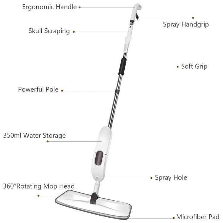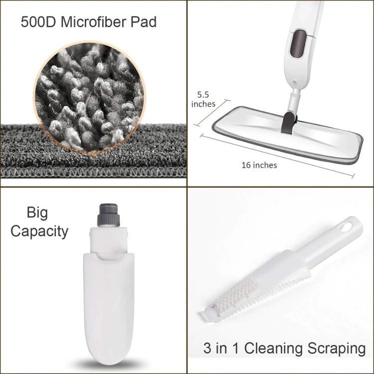 Water Spray Mop, Flat Spray Mop, 360 Degree Spray with Mop, Microfiber Spray Mop for Floor Cleaning, Spray Mop, Multi-Surface Spray Mop with Refillable Bottle, Easy to Fill and Refill with Machine Washable Mop