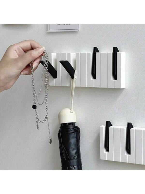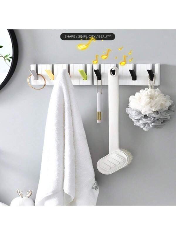 Piano Wall-Mounted Coat Hooks, with 4 Retractable Hooks, Entryway Wall Coat Rack Coat Hanger, Decorative Adhesive Hooks for Umbrella,Bag, Key
