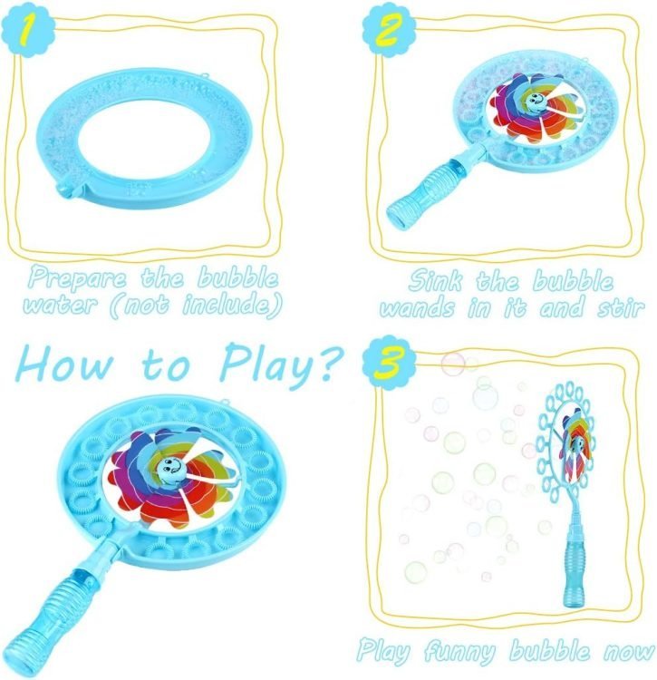 • This windmill bubble stick requires no battery, you can just dip bubble wand into bubble solution, then with the wind you can easily make the bubble and have endless fun.