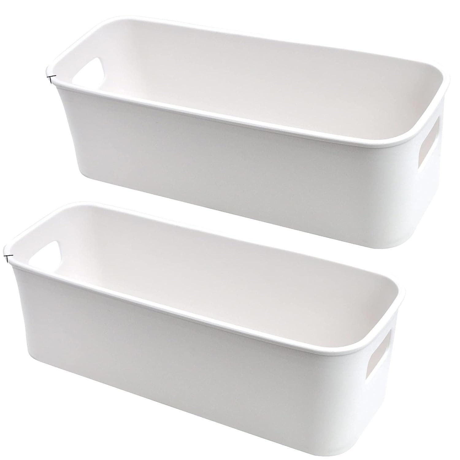 Plastic Storage Boxes with Handles Kitchen Cabinet Organiser Box Baskets Storage Plastic Box for Bathroom Shelf Plastic Box | Pack of 2 | White