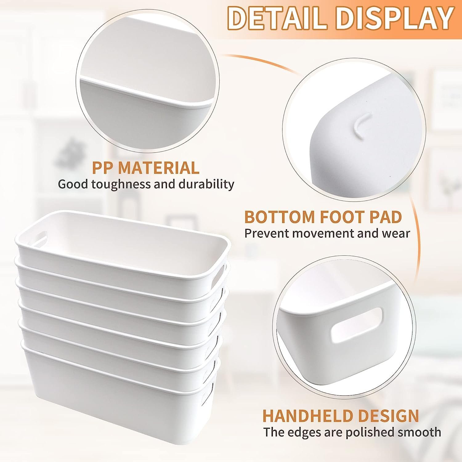 - Portable Design The plastic storage baskets have handles on both sides and are smoothed so as not to hurt your hands, allowing you to pick them up effortlessly. Our baskets are stackable so you can stack them compactly when not in use.