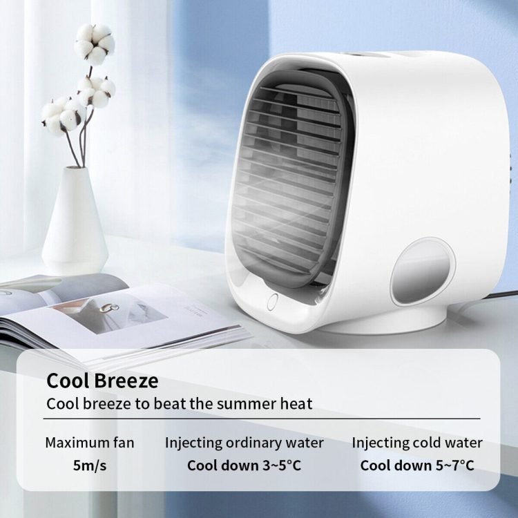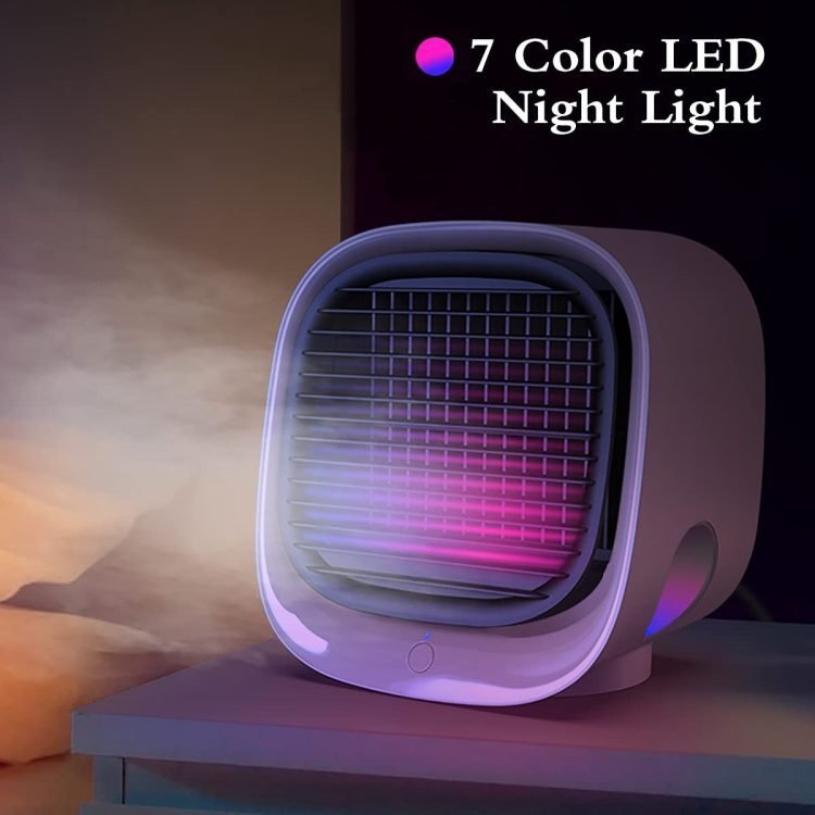 - POWERFUL AIR COOLER DESK FAN: Utilizing evaporative technology, it can effectively turns hot dry air into cool moist and refreshing it. Keeps you cool and skin moisture, more comfortable and healthier than staying in air-conditioned space all day long.