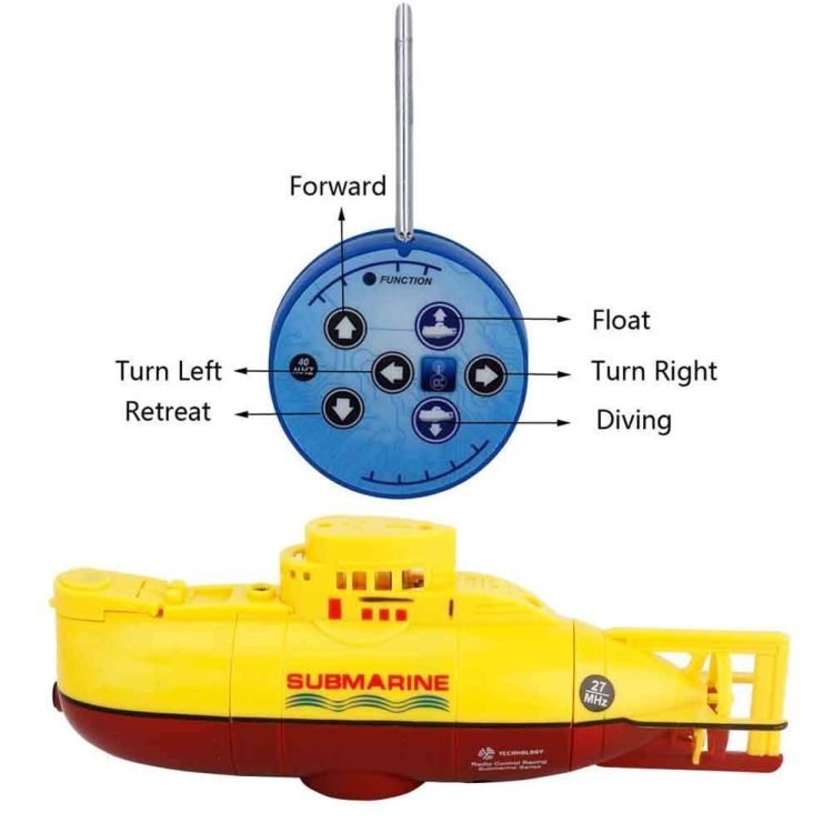 - Sub-marine Radio controlling for forward, backward, up, down, turn left, turn right, 360?rolling, suspension. Easy To Use its Aquarium and bath Tub. Control distance under water about 5M.