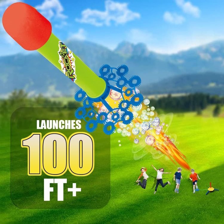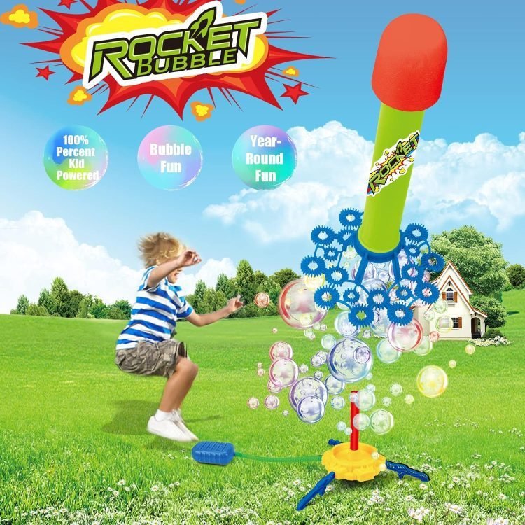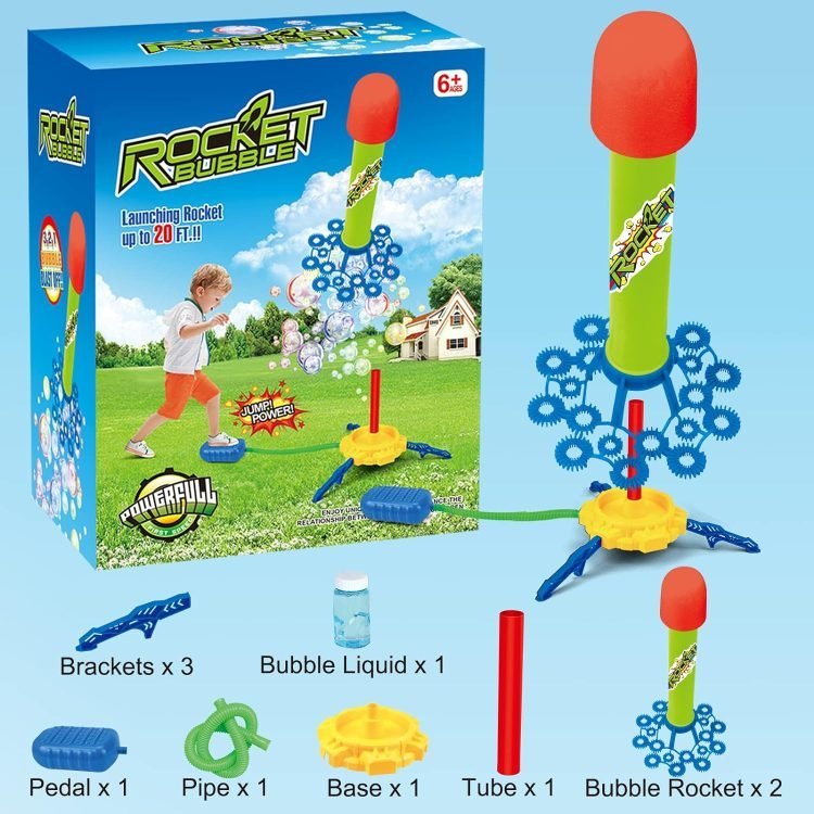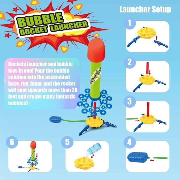 Pour the bubble solution into the assembled base and step on the pedal, the rocket will launch upwards and produce a series of bubbles, immerse you in a world full of colorful bubbles, perfect for kids who need to release energy in a fun and safe way.