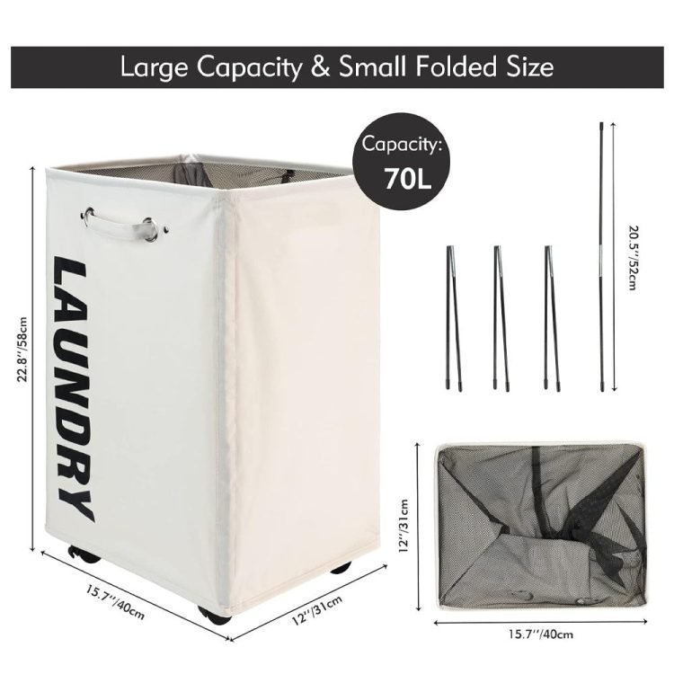 - ?Detachable Rods & Lockable Wheels?The laundry cart with wheels can stand up straight and stably with detachable rods, no more annoying collapses! You can lock one of the wheels, then it will stay in place.