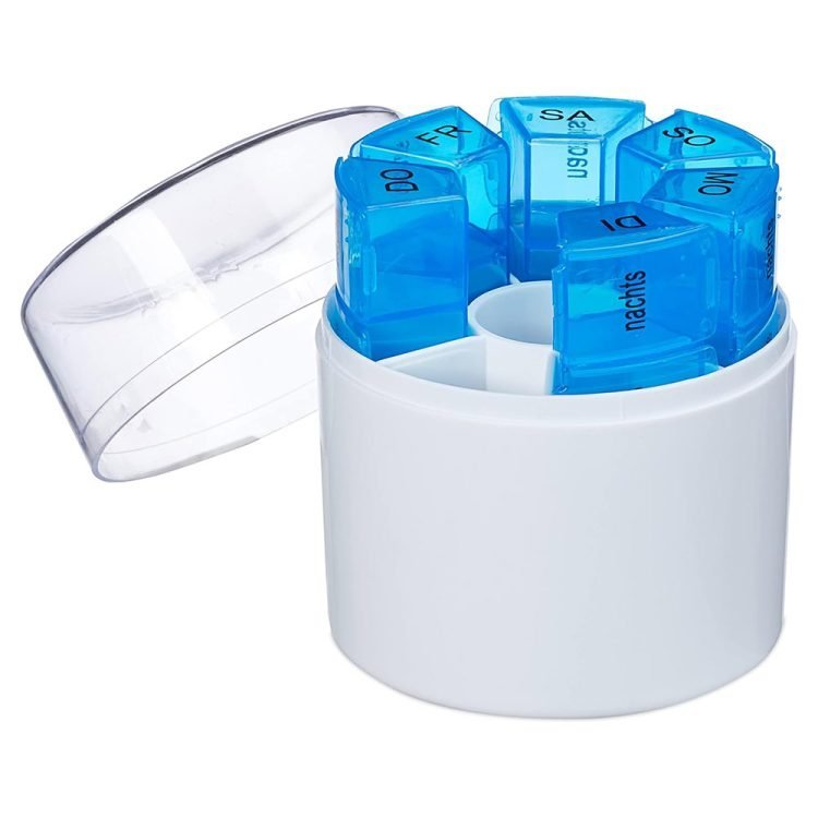 - For on the go: Round medicine box with individual daily boxes to take out – Perfect for travelling