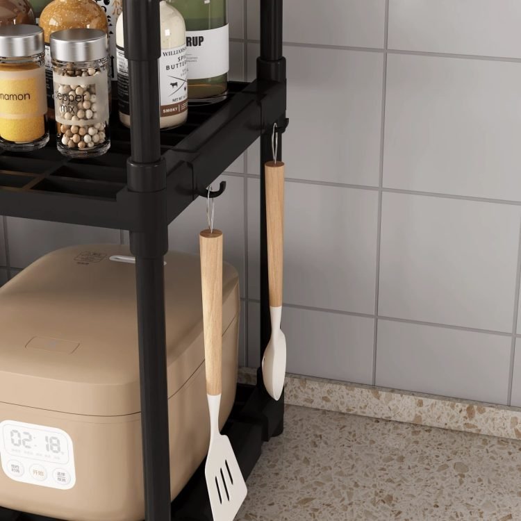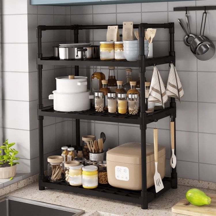 • Practical, space-saving storage unit, ideal for microwave ovens and other kitchen appliances, saving a lot of space and time by using more convenient appliances and supplies.