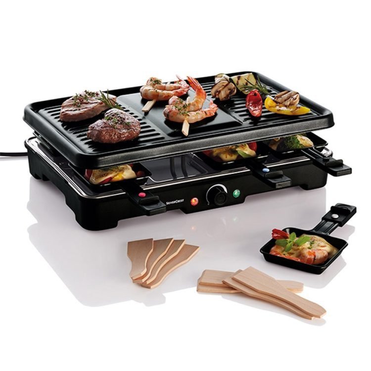 Includes 8 dishwasher-safe plastic scrapers and raclette pans