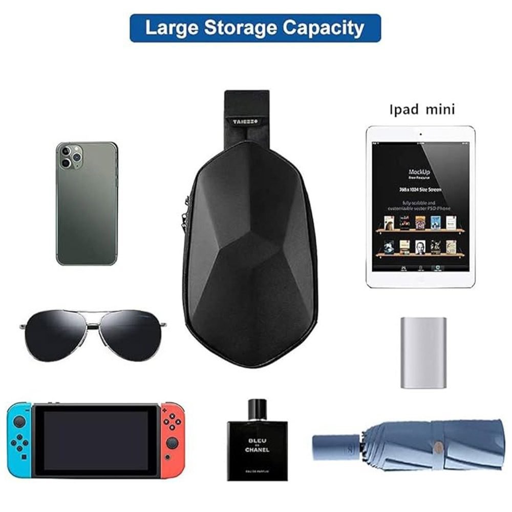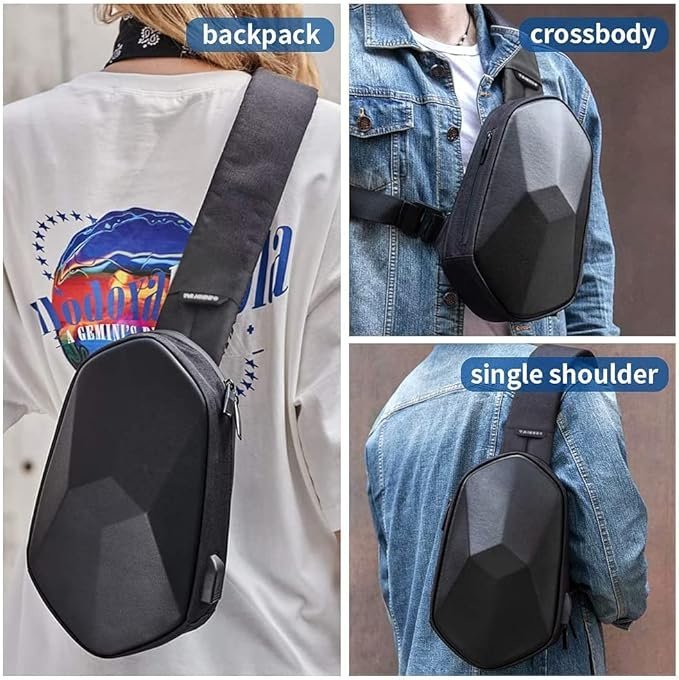 - [simple and unique shell design] this sling bag inspired by geometry figure,made by 3 layer PU with soft surface ,Has a good buffering effect on exterl pressure, Slim and lightweight ,it works as an cool and protective way to carry your ipad or electronic product.