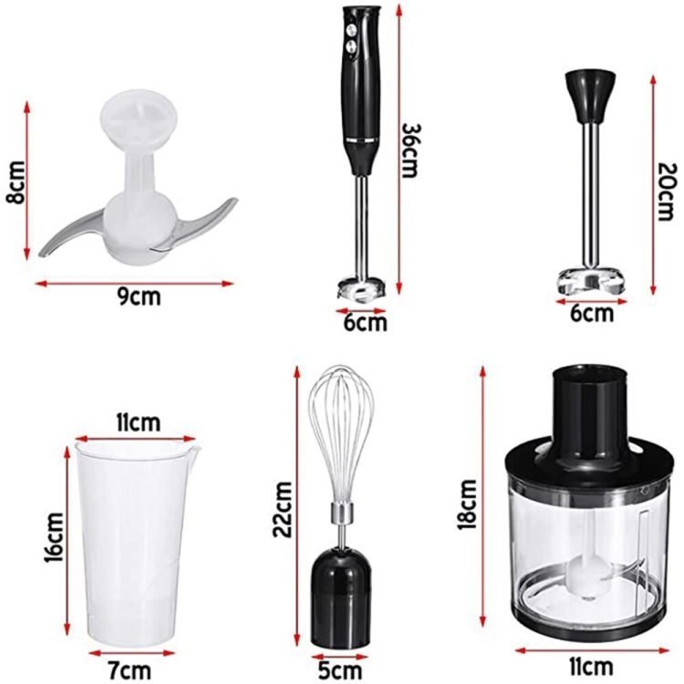 Sokany 4 In 1 Electric Handheld Blender Stick Hand Blender Mixer Food Processor Set Chopper Pengisar Pegang Tangan ? 4-in-1 Multi-functional: 500W Powerful motor operates at low noise. ? Quick: Making delicious baking product: cake, souffle, fresh juice and other cuisine just in seconds. ? Stylish Stainless Steel Panel: Ergonomic handle for a secure grip-splash guard to prevent food splatter. Provide excellent convenience and easiness for blending. ? Comes With High Quality Attachments: Blender with SS blade to puree and liquid ingredients into smoothie. ? 2 Speed Operation: 2 speeds settings to suit different ingredients and attachments. ? Detachable attachments: Easy to wash ? Compact appearance, work efficiently and take the strain out of everyday kitchen tasks. Extremely fits to your kitchen and home. Package Included: 1 x Blender Sticker 1 x 700ml(24oz) Beaker 1 x Chopper 1 x Egg Whisk