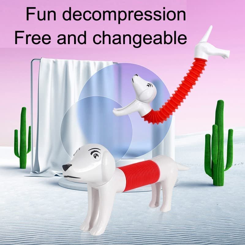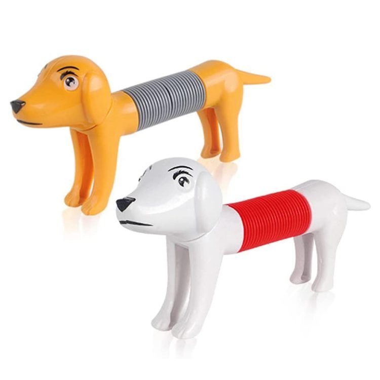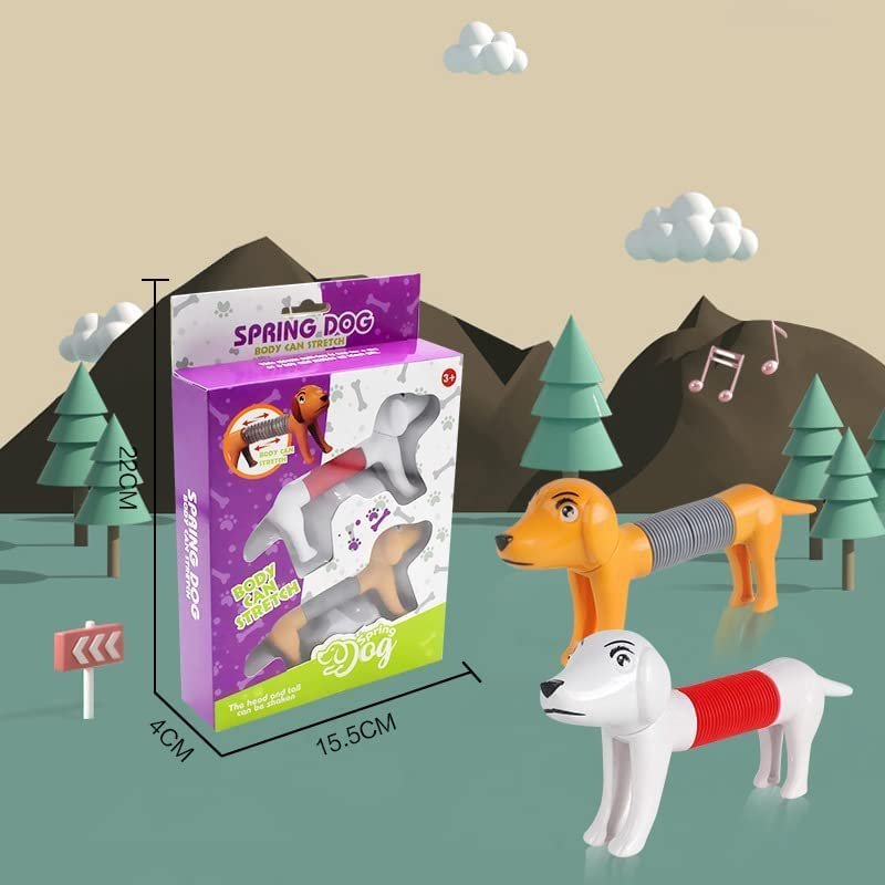- The body of this spring dog is made of a popular tube, which can be retracted and deformed freely with pop sound allowing kids to get creative and pose in a variety of ways. Perfect Size: L/9.1 inches, W/6.1 inches, H/1.6 inches Inch.