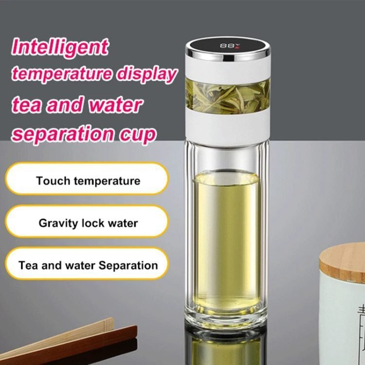 Stainless Steel Water Bottle Intelligent Temperature Display Thermos Cup Glass Tea Separation Warehouse Vehicle.