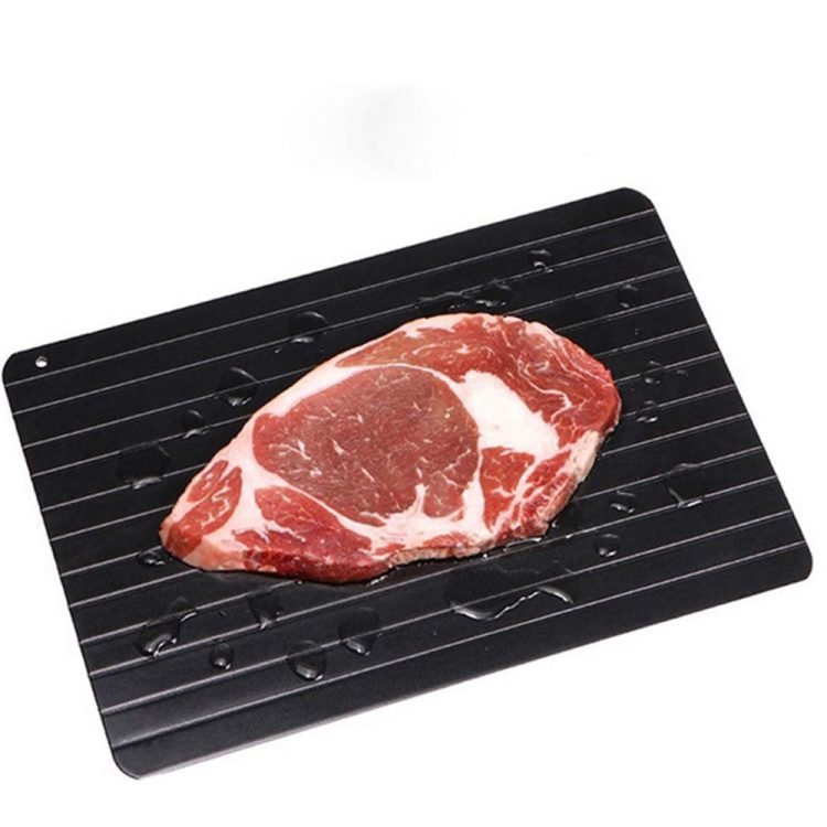 - It is easier to clean meat thawing board because of its amazing quality of aluminum and non-stick coating. Having a food-grade material, our thawing board is the safest way to defrost meat by having no chemicals, battery, or electricity.