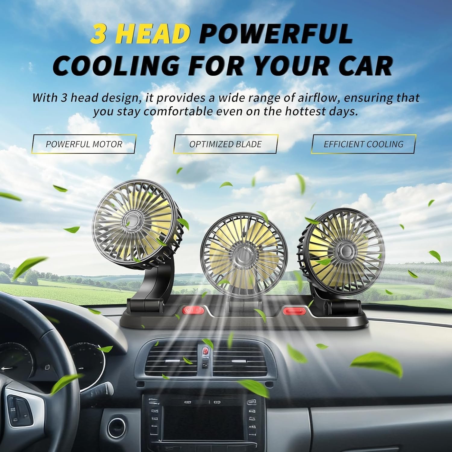 • Powerful Cooling for Your Car: This upgraded car fan brings powerful cooling to your sedan, SUV, RV, truck, or cruise. With its three-head design, it provides a wide range of airflow, ensuring that you stay comfortable even on the hottest days. The fan’s powerful motor and optimized blade design ensure efficient and effective cooling, keeping you refreshed and alert during long drives.