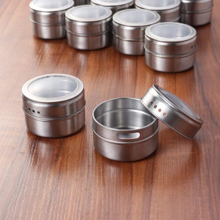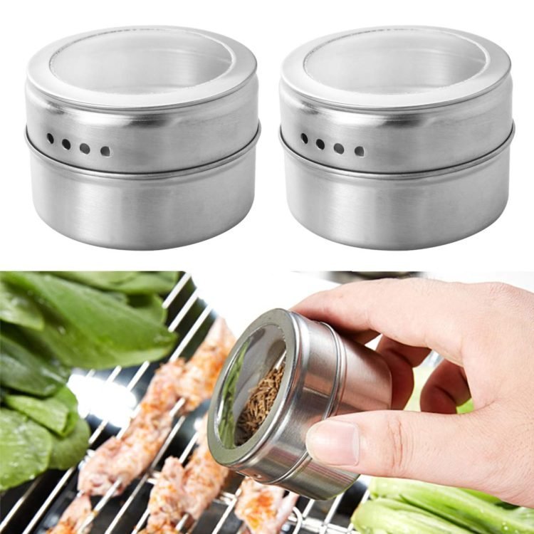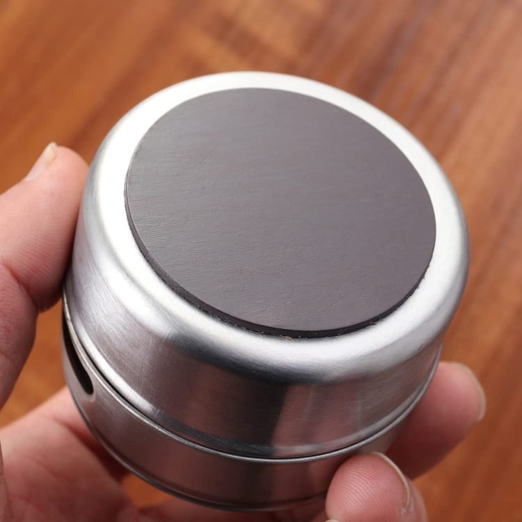 - salt and pepper dispenser. The storage jars have a magnetic backing, so they will attach to any flat metal surface, including most appliance and refrigerator doors.