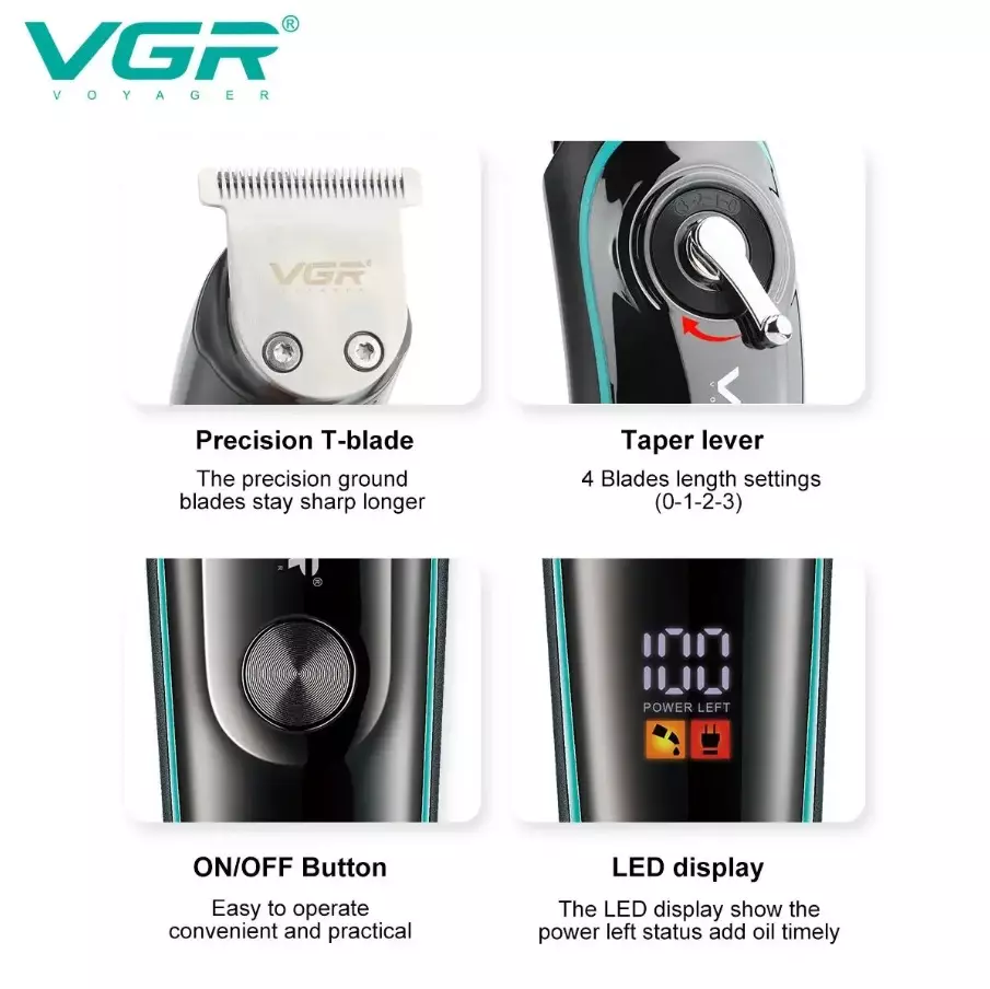 VGR Electric Hair Clippers Trimmer Cutting Beard Cordless Barber Shaving Machine
